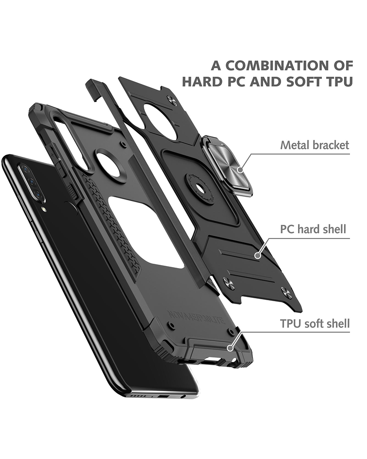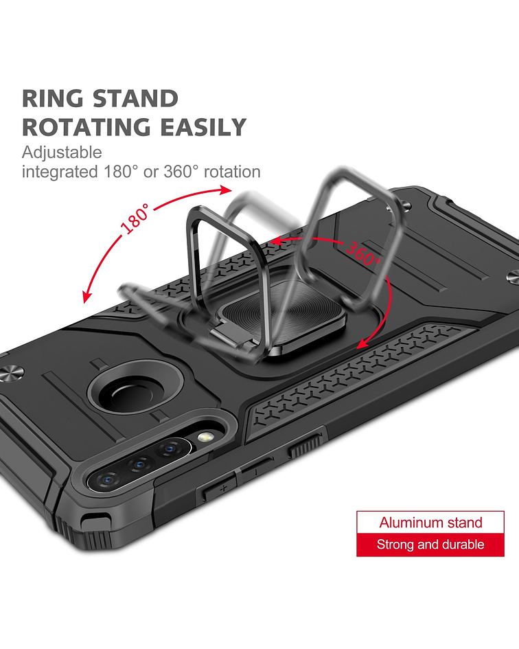 Carcasa de tipo Armor Anti Golpes. Protege tu equipo de caídas y daños con esta excelente carcasa. Alta calidad y resistencia, con varias capas de cobertura. Cuenta con anillo giratorio 360 grados, con el cual podras apoyar tu teléfono. Tiene función magnética para poder adherir tu equipo a sujetadores magnéticos de auto.